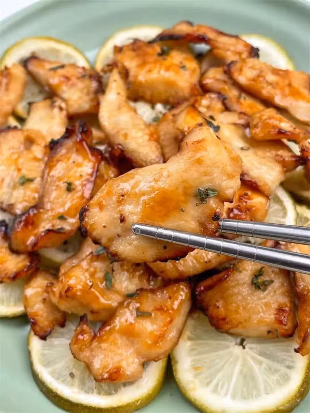 2、雞胸肉切片加入胡椒粉、生抽、檸檬腌制10分鐘