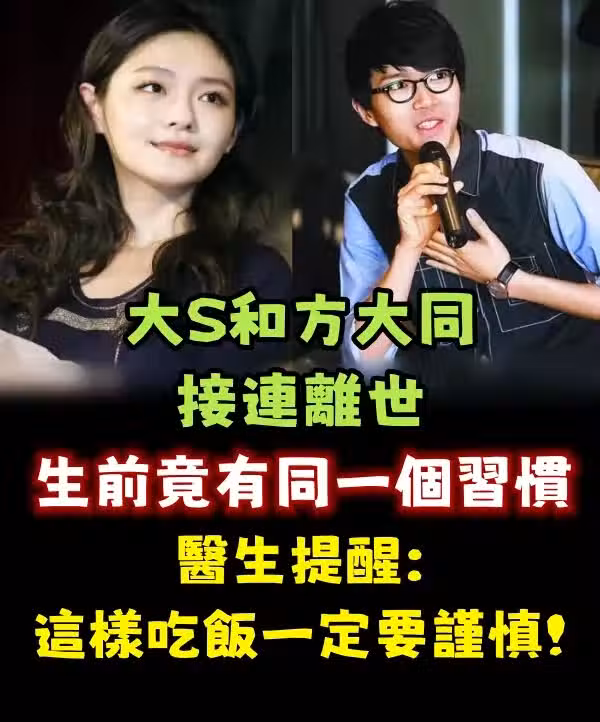 大S與方大同接連離世,生前竟有「同一個習慣」,醫生提醒:這樣吃飯,一定要謹慎!