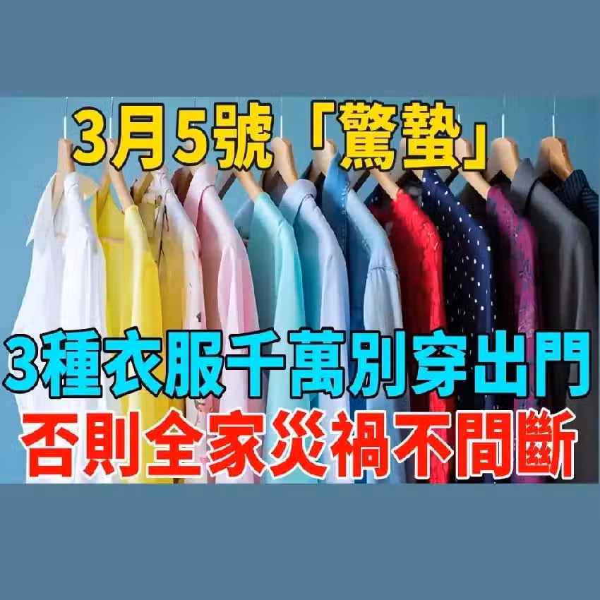 不要不相信!年3月5號「驚蟄」,這3種衣服千萬別穿出門!否則全家災禍不間斷!再忙也花5分鐘看看!