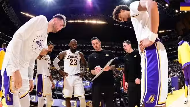 就拿這場對陣尼克斯的硬仗,用人方面,雷迪克在里夫斯表現災難時,依舊信任他,給他時間。當球隊末節依舊深陷泥潭,他果斷放棄里夫斯,重用文森特,這直接助力湖人扭轉了局面,而里夫斯在加時總算是沒有辜負雷迪克,他的三分如金子一般關鍵。在戰術層面,要知道,看起來布倫森的離場,導致尼克斯最後崩盤。但實際上,湖人在布倫森受傷之前,就完成了逆轉,且在他離場前,湖人是保持領先的一方。而在常規時間最後一次防守回合,雷迪克的關鍵布置,更是鎖死了尼克斯。