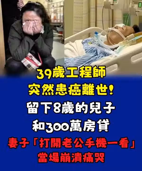39歲工程師突然患癌離世!留下8歲的兒子和300萬房貸 妻子「打開老公手機一看」當場崩潰痛哭。