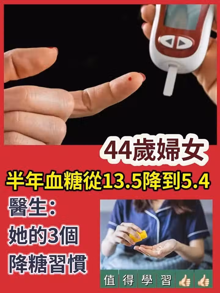 44歲婦女,半年血糖從13.5降到5.4,醫生: 她的3個降糖習慣,值得學習!!