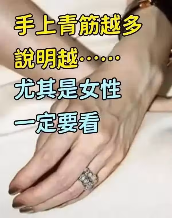 手上青筋越多, 說明越……尤其是女性一定要看哦