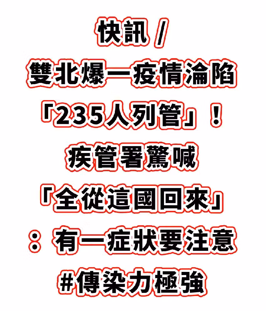 快訊/雙北爆一疫情淪陷「235人列管」! 疾管署驚喊「全從這國回來」:要注意有一症狀 #傳染力超強