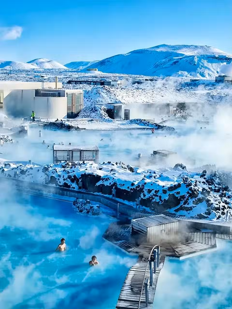 藍湖溫泉的水溫常年保持在37-39度,即使冰天雪地,你依然可以在溫暖的藍色水池中放鬆身心。