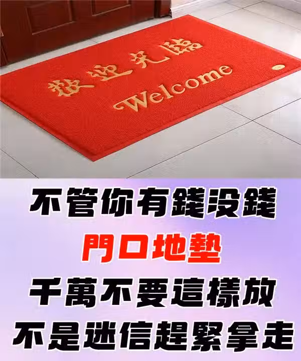 門口地墊的主要作用是阻擋外來的污穢之氣,但如果地墊過於老舊、髒污、破損,不僅無法擋煞,反而會讓家中累積負能量,影響整體運勢,導致破財、家人健康不佳!