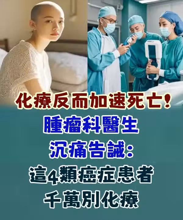 然而,近日腫瘤科醫生髮出沉痛告誡:並非所有癌症患者都適合化療,其中有四類患者盲目接受化療,不僅無法獲益,甚至可能加速死亡。