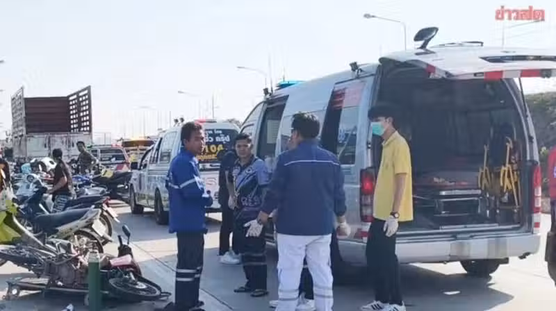 根據媒體《Khaosod》的報導,3月3日,泰國芭達雅一名孕婦與丈夫、2名幼女「4貼」騎機車外出,途中卻不幸遭大貨車擦撞,機車瞬間失去控制倒地,一家4口也被拋飛馬路上。