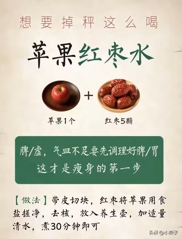 做法:食鹽搓凈蘋果帶皮切塊,紅棗去核,放入養生壺加適量清水煮30分鐘。