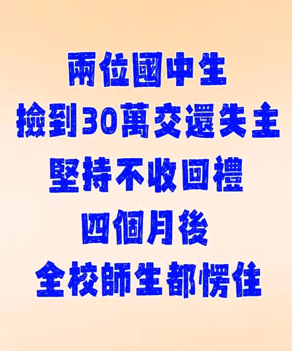 國中生 「撿到30萬交還失主」 堅持不收回禮!4個月後全校師生都愣住…