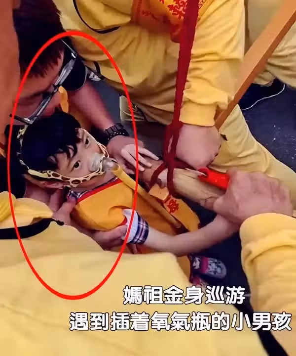 媽祖金身巡遊!神轎突「90度轉向」 氧氣瓶男孩掙扎行禮,接下來「一幕」逼哭全網