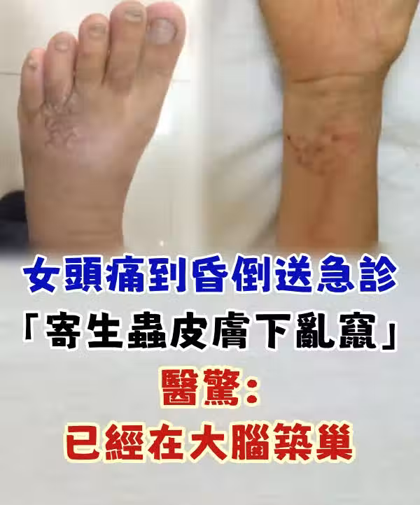 女頭痛到昏倒送急診 「寄生蟲皮膚下亂竄」醫驚:已經在大腦築巢
