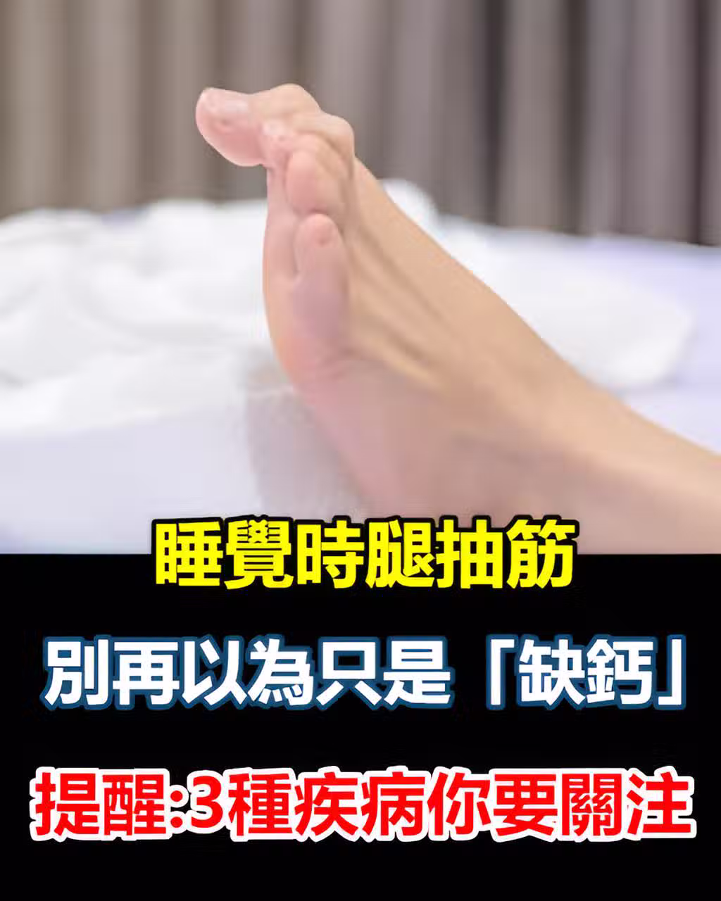 睡覺時腿抽筋,別再以為只是「缺鈣」!提醒:3種疾病你要關注