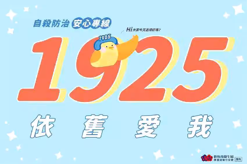 您倘有心理壓力或情緒困擾, 可撥打本部1925安心專線(依舊愛我),提供24小時免付費心理諮詢服務。