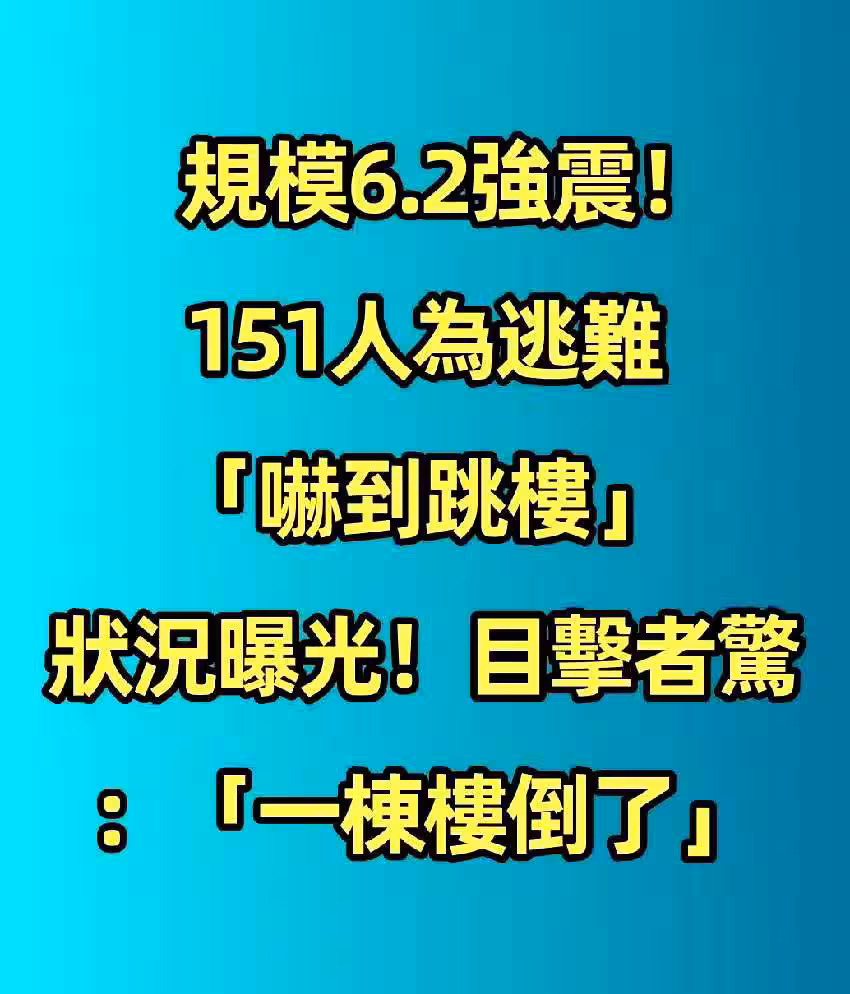 規模6.2強震!151人為逃難「嚇到跳樓」狀況曝光 目擊者驚:「一棟樓倒了」