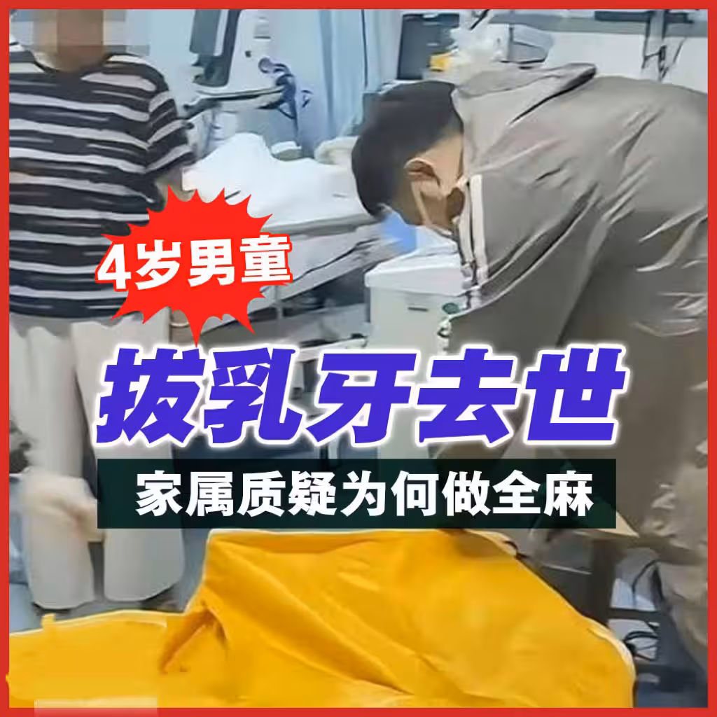 (北京綜合電)中國湖南省一名4歲男童近日在醫院拔牙,全身麻醉後不幸身亡,家屬質疑醫院過失,事件引發熱議,有網民質疑這麼小的孩子「為何需要全麻」?對此,醫院僅稱「正在處理」。