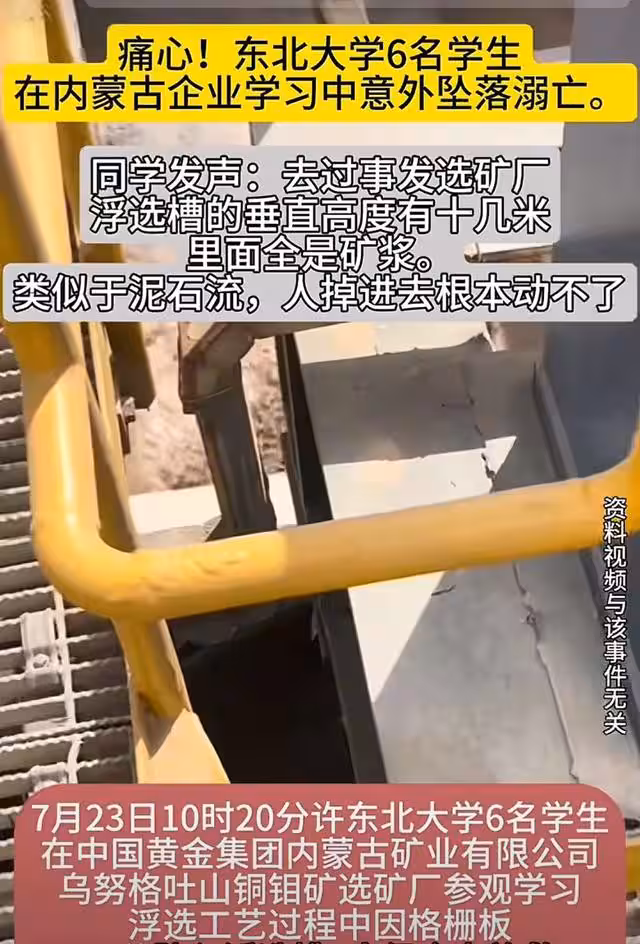 快訊\六大學生參觀金礦企業,墜亡選礦池!