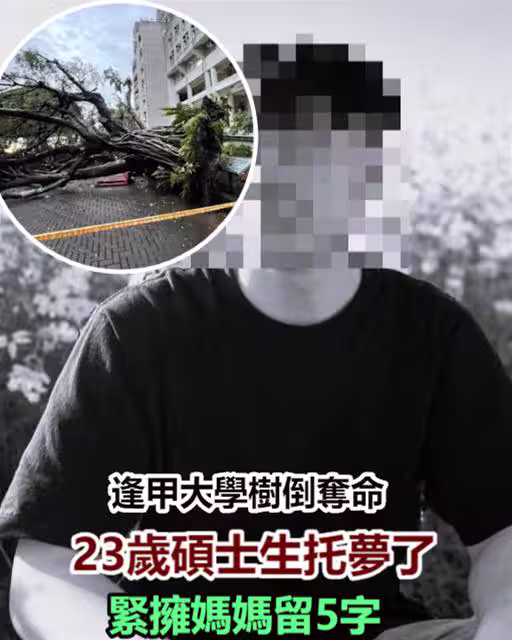逢甲大學樹倒奪命!23歲碩士生託夢了,緊擁媽媽留5字!
