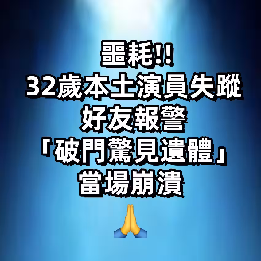 32歲本土演員失蹤!好友報警「破門驚見遺體」當場崩潰 #告別式時間曝光 !