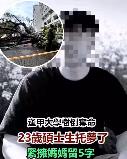 逢甲大學樹倒奪命!23歲碩士生託夢了,緊擁媽媽留5字.
