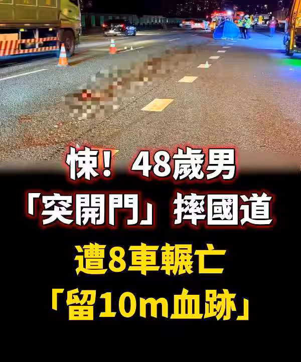 悚!48歲男「突開門」摔國道 遭8車輾亡「留10m血跡!」