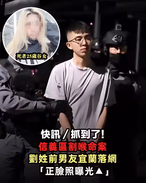 快訊/抓到了!信義區割喉命案,劉姓前男友宜蘭落網「正臉照曝光」