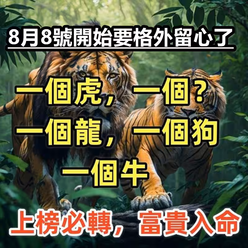 8月8號(農暦閏六月十五)開始要格外留心了,這些生肖富貴入命