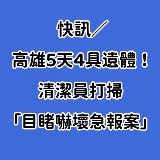 快訊/高雄5天4具遺體!清潔員打掃「目睹嚇壞急報案」