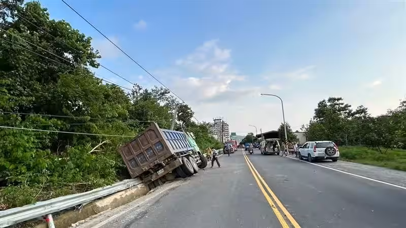 高雄砂石車撞電桿護欄!車體扭曲、66歲司機受困 無生命跡象送醫搶救