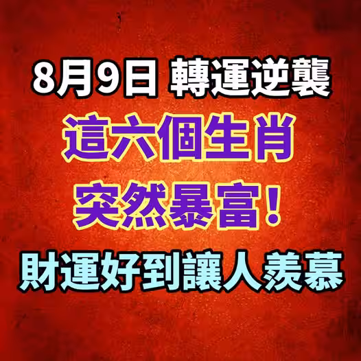 8月9日轉運逆襲,突然暴富!這六個生肖財運好到讓人羨慕