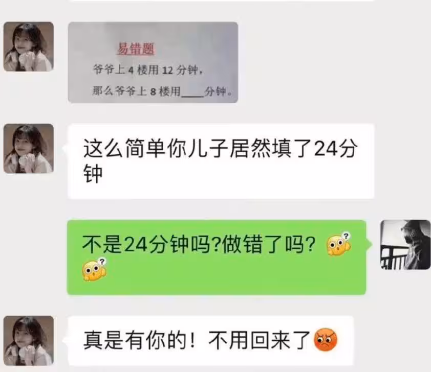 上4樓實際上爬了3層樓梯,而上8樓需要爬7層樓梯,也就是說爬一層樓需要4分鐘,那麼爬7層樓梯就需要28分鐘,也就是說正確答案不是24而是28。