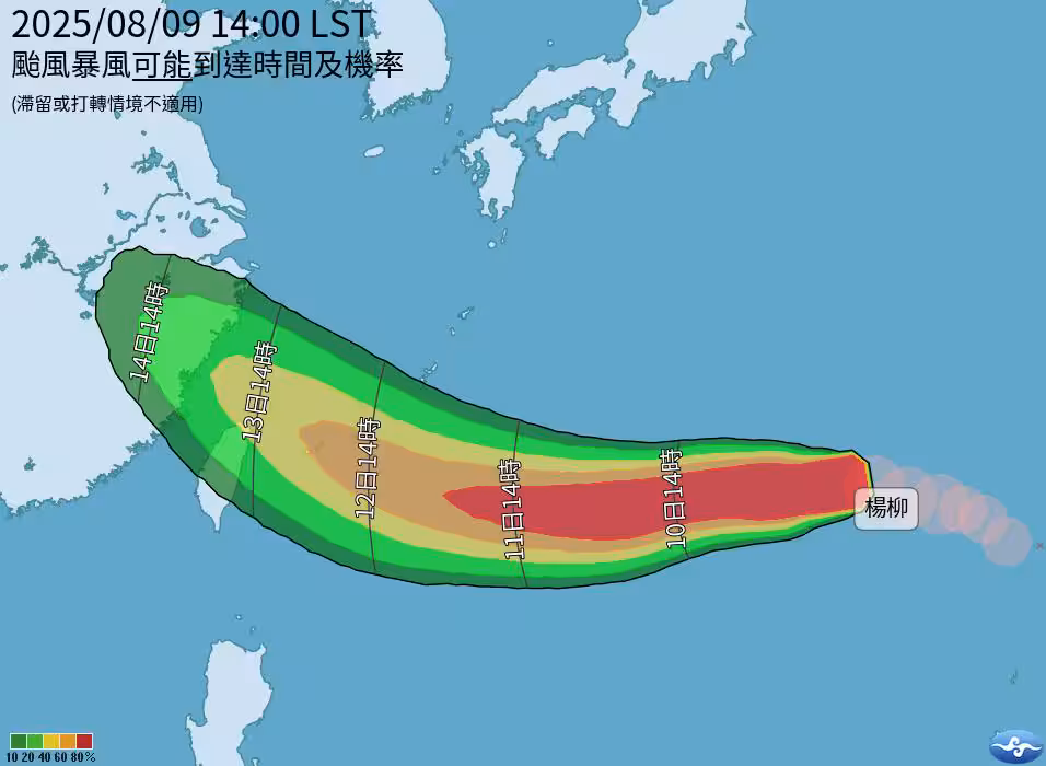 不過,楊柳颱風路徑如果偏南,降雨將更劇烈。劉沛滕直言,下周四颱風可能位在台灣西北側,尤其南部、東半部有明顯雨勢。