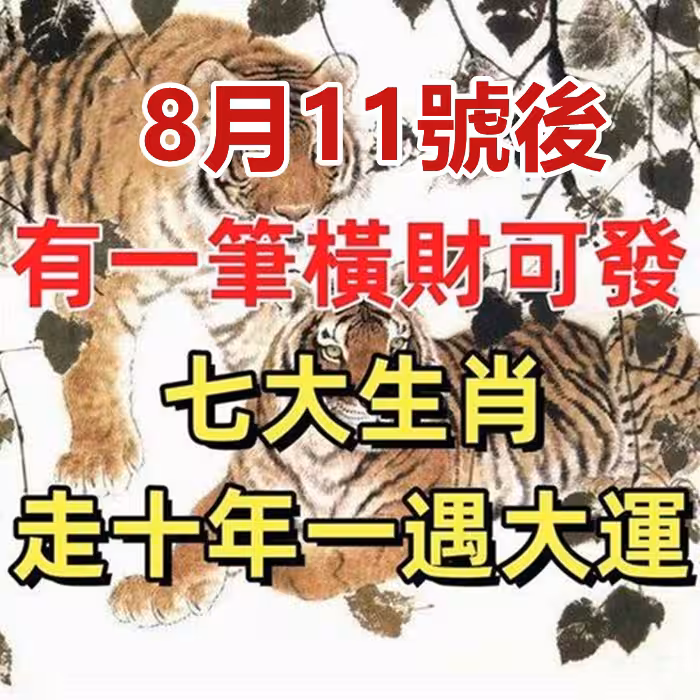 8月11號後有一筆橫財可發,七大生肖走十年一遇大運