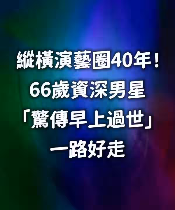 縱橫演藝圈40年!66歲資深男星「驚傳早上過世」一路好走!