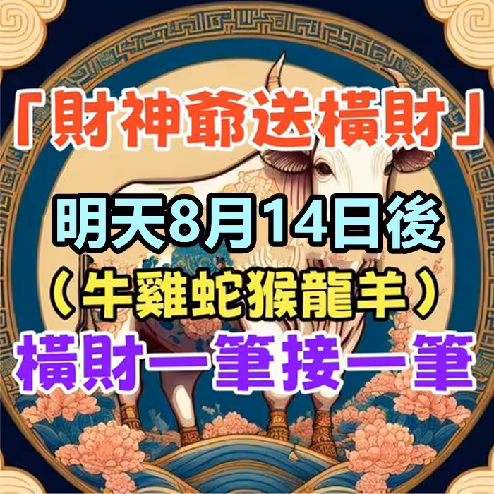 「財神爺送橫財」明天8月14日後,橫財一筆接一筆的生肖