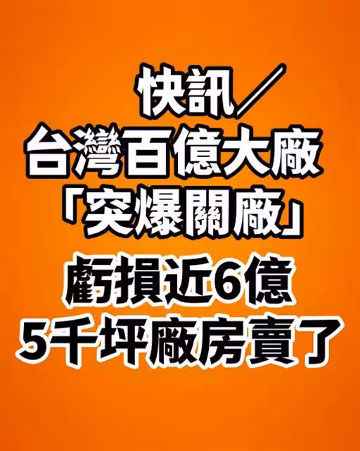 快訊/台灣百億大廠「突爆關廠」!虧損近6億 5千坪廠房賣了.