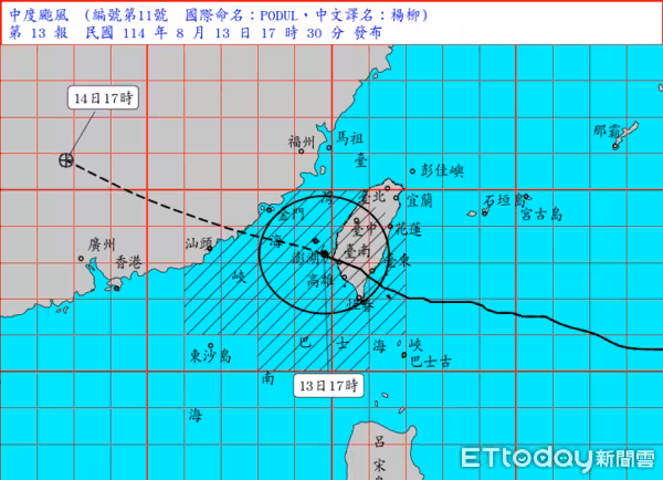 楊柳颱風快閃離台,過去3小時強度稍減弱,未來強度有持續減弱且暴風圈縮小的趨勢,本島及澎湖將在今天深夜脫離暴風範圍,金門則在明天清晨脫離暴風範圍,預估明天清晨解除海上陸上警報。《ETtoday新聞雲》整理明(14)日最新停班停課資訊如下,供讀者快速掌握: