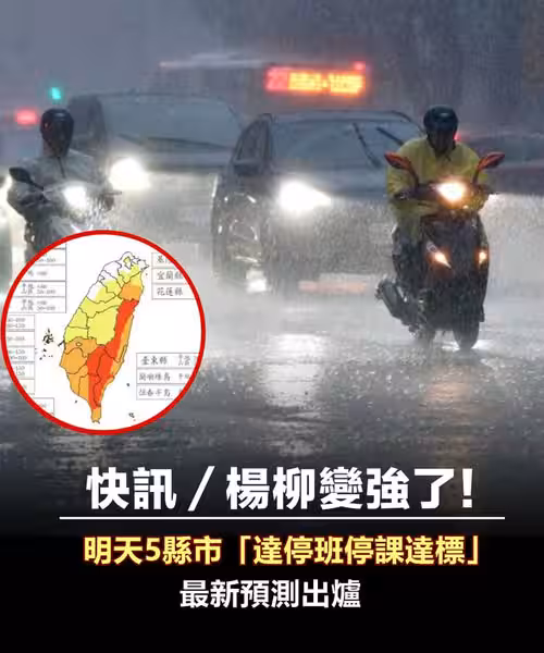 快訊/楊柳變強了!明天5縣市「達停班停課達標」最新預測出爐