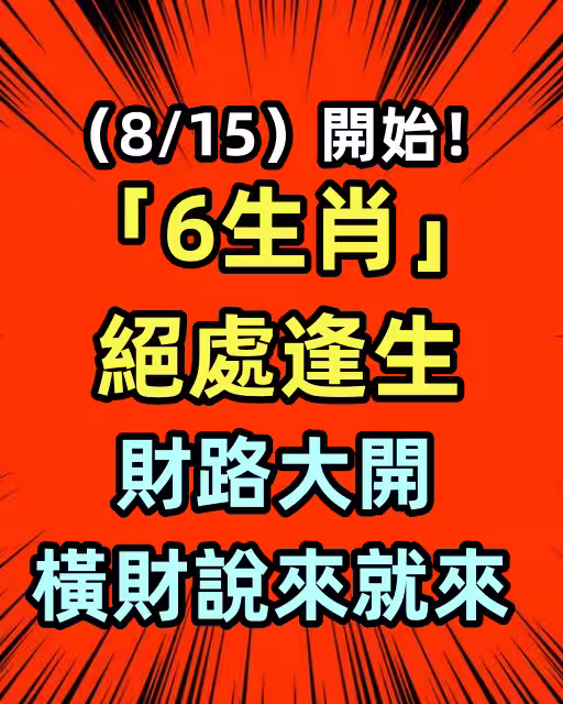 (8/15)開始「6生肖」絕處逢生,財路大開,橫財說來就來