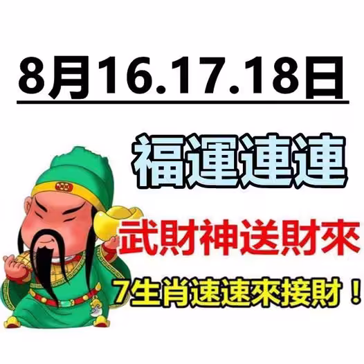 8月16.17.18日武財神送財來,七生肖來接財