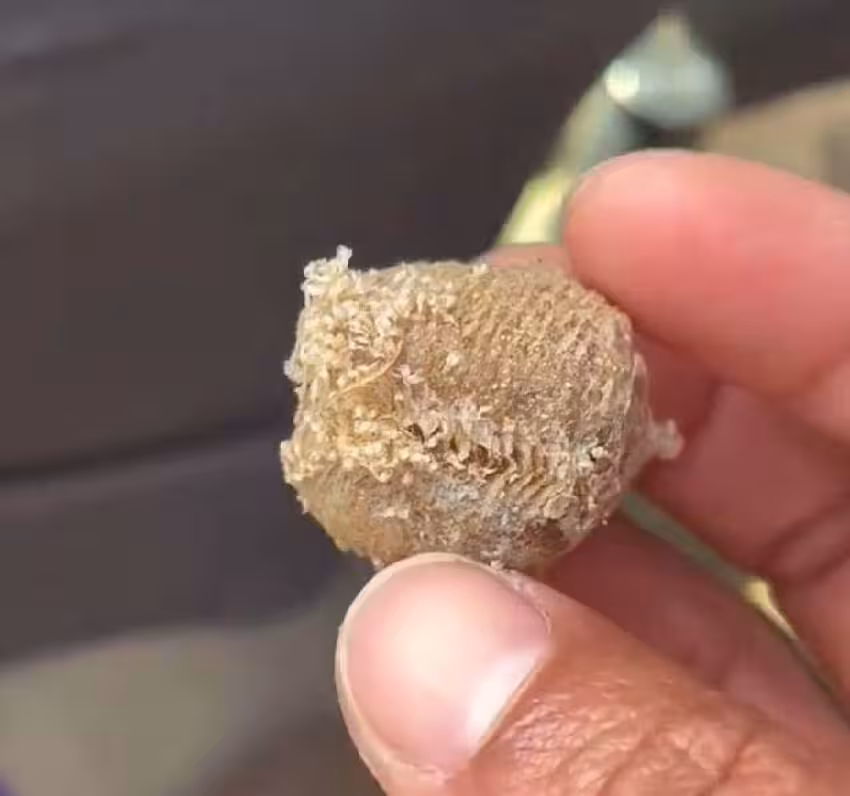 根據中國媒體《大象新聞》的報導,中國河北一名女子在山上發現一顆非常奇特的石頭,外觀不僅呈現土黃色球體,表面還有細細的紋路,她覺得新奇便決定帶回收藏,回程時她將「石頭」放在了車上,誰知一個禮拜後出現驚人變化。