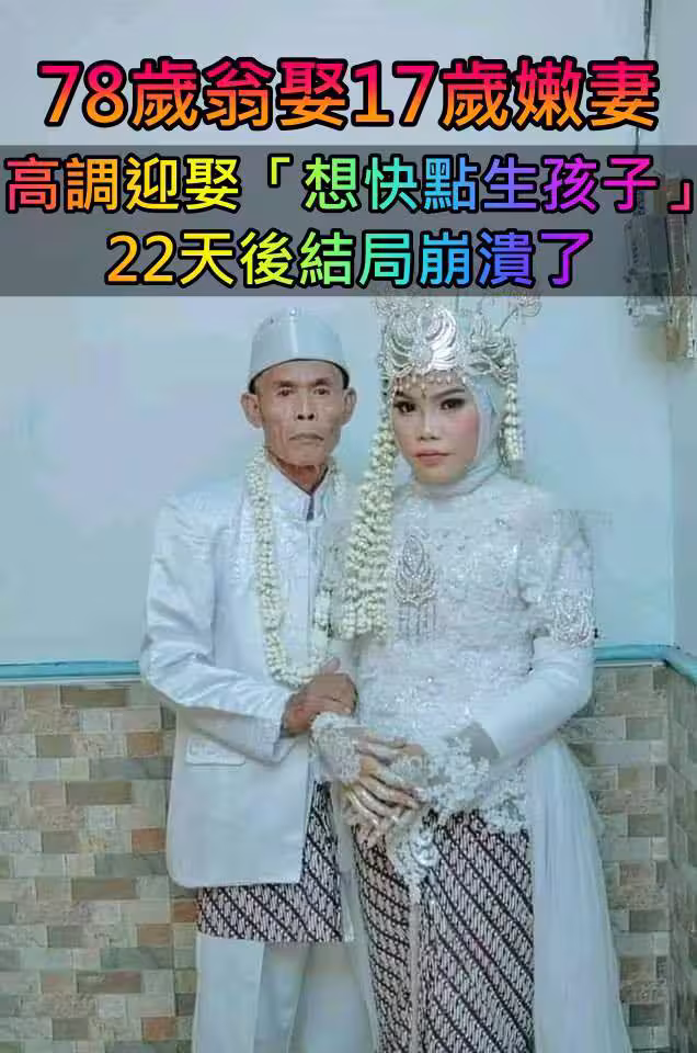 78歲翁娶小60歲嫩妻!高調迎娶喊「快點生孩子...」22天後「果真發生慘劇」女方家人氣瘋!