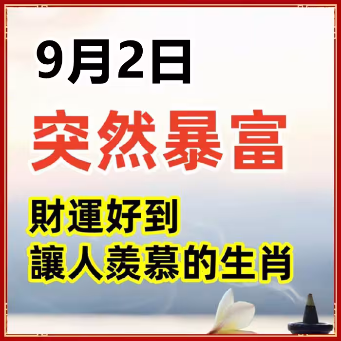 9月2日突然暴富,財運好到讓人羨慕的生肖