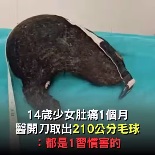 14歲少女「肚子痛了整整1個多月」!醫師開刀「取出長達210公分毛球」:這習慣害的!