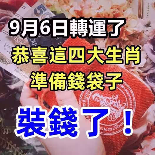 9月6日轉運了,恭喜這四大生肖準備錢袋子裝錢了!
