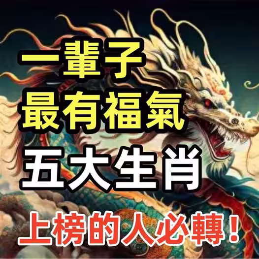 一輩子最有福氣的五大生肖,上榜的人必轉