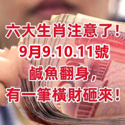 9月9.10.11號鹹魚翻身,有一筆橫財砸來的六大生肖