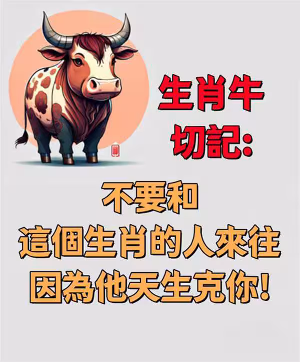 生肖牛切記: 不要和這個生肖的人來往,因為他天生克你....