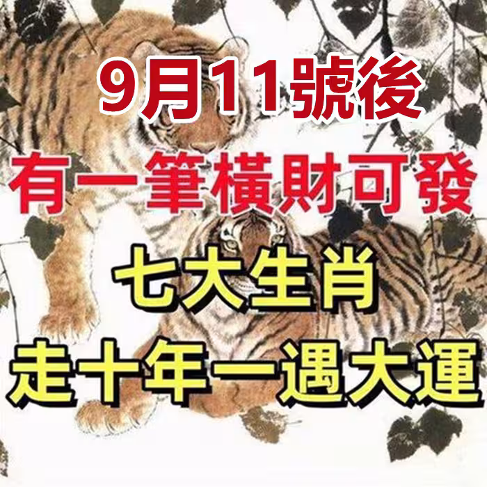 9月11號後有一筆橫財可發,七大生肖走十年一遇大運
