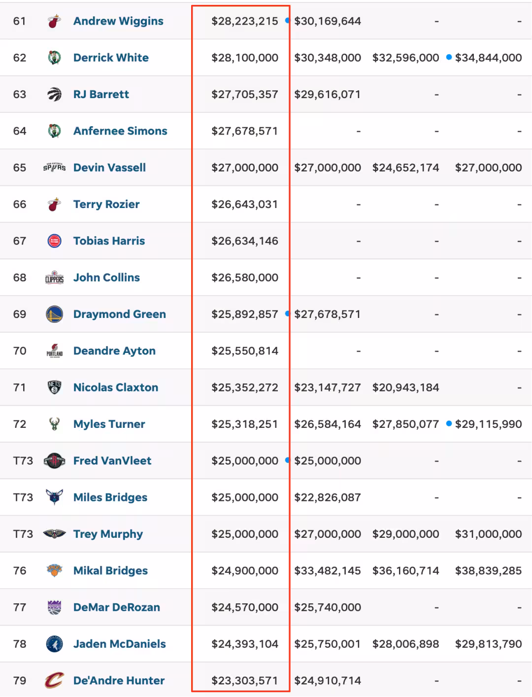 所以,對比之下,卿們覺得吉迪的合同如何?應該還是超值的吧?! 按照現在各位球員的薪金情況,約什-吉迪的平均年薪差不多能在NBA第72位左右。